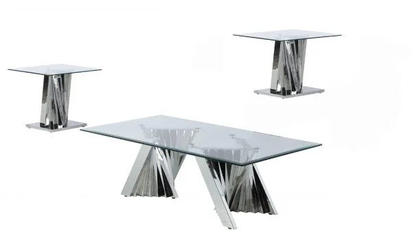 • BQ-CT01-02-02 Glass Coffee Table Sets: Coffee Table and 2 End Tables with Stainless Steel Base BQ-CT01-02-02 Glass Coffee Table Sets: Coffee Table and 2 End Tables with Stainless Steel Base $1,929.00