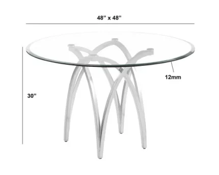 Make a statement in your dining area with this modern glass dining table. Featuring a sleek, circular tabletop crafted from clear 12mm tempered glass and matte chrome base, it offers both durability and a sophisticated aesthetic. Available in matte silver and matte chrome, you will surely find the right fit for your home. Seating capacity is 4.