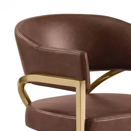 Add a touch of modern luxury to your space with this pair of Leathaire (faux leather) low-back side chairs, featuring a sleek gold chrome frame and tri-leg design. The soft, durable Leathaire upholstery mimics genuine leather while being easy to maintain, and is available in colors Mocha, Toffee, and Espresso. Perfect for dining rooms, offices, or lounge areas, these stylish chairs enhance any modern or glam interior.