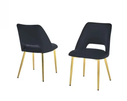 This classic set of 2 side chairs features a sumptuous velvet (Grey, Black colors) or faux leather (White color) with a unique gold stainless steel frame that combines comfort with beauty, suitable to complement dining sets.
