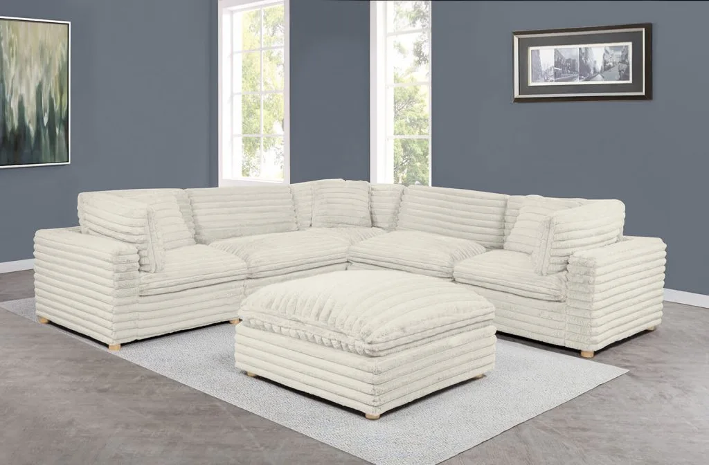 Transform your living room with this modern velvet corduroy sectional and ottoman set. Designed for both comfort and function, this cozy sectional features soft ribbed upholstery, plush cushions, and built-in cup holders, while the matching ottoman offers hidden storage for added convenience. Perfect for lounging, entertaining, or maximizing space with style.
