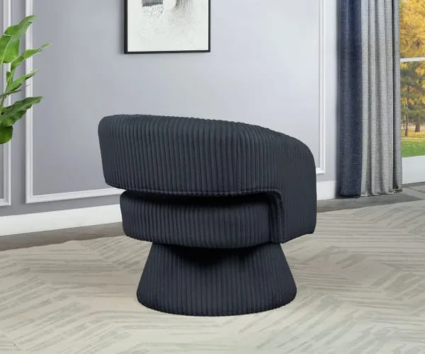 Add a cozy feel to your living space with this accent barrel chair with striped velvet upholstery. This chair features extra-large seating room, a 360-degree swivel, and leg adjusters in the base to help prevent wobble. Available in 4 neutral colors to choose from, you will surely find the right match for your home.
