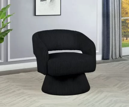 The new swivel chair offers a stylish and comfortable addition to any space. Its matching ottoman provides a cohesive look and extra comfort, making it a versatile piece for relaxation or work. The solid wood construction ensures durability and longevity, while the natural coloring adds a touch of elegance and warmth. The velvet stripe design upholstery enhances the chair’s aesthetic appeal, adding a luxurious texture and visual interest. This combination of quality materials and thoughtful design makes it an excellent choice for anyone looking to upgrade their home office or lounge area with a blend of functionality and style. This chair requires light assembly; all hardware is included in the packaging.