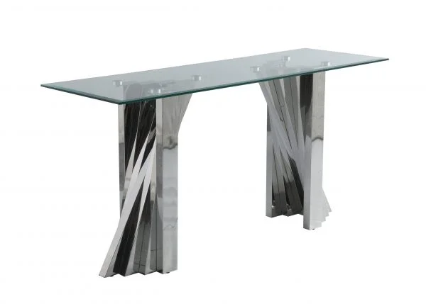 Spice up the vibe with this nice 4 piece coffee set. This coffee set features a combo of 1 coffee table, 2 end tables and 1 console table, all crafted of tempered glass top with beveled edge 10″mm thick. The pedestal base features stainless steel in unique spiral design that is modern and glamorous. The coffee table, the end table and the console table can be purchased separately as well. Available in silver base and gold base. This is silver base sets.
