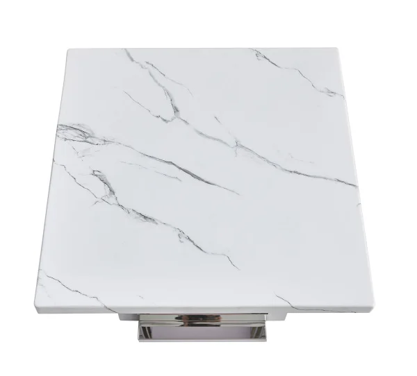 BQ-CT310-1 White Marble Coffee Table Sets: Coffee Table and End Table with Stainless Steel Base