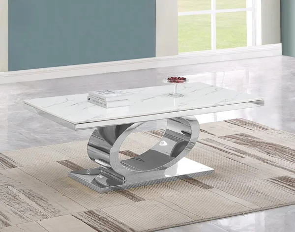 BQ-CT430 White Marble Top Coffee Table with Stainless Steel Base