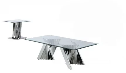BQ-CT01-02 Glass Coffee Table Sets: Coffee Table and End Table with Stainless Steel Base