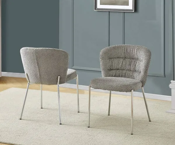 Add a cozy touch to your home with our new fluffy side chairs. The upholstery features a unique checker-textured pattern and is available in colors dark gray and cream. These chairs are sold as a set of 2 and include adjustable feet to help prevent wobbles.