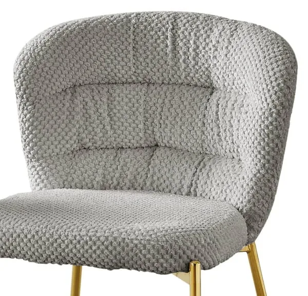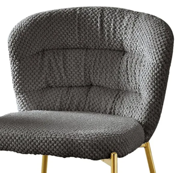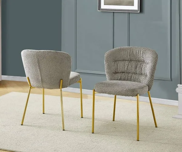 Add a cozy touch to your home with our new fluffy side chairs. The upholstery features a unique checker-textured pattern and is available in colors dark gray (in gold only), gray, and cream. These chairs are sold as a set of 2 and include adjustable feet to help prevent wobbles.