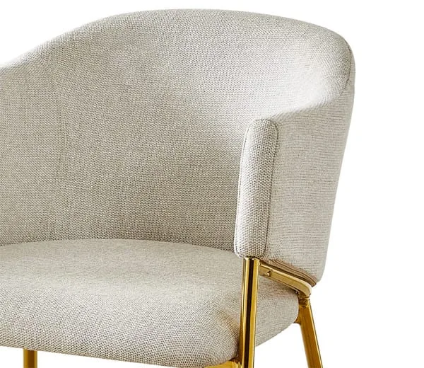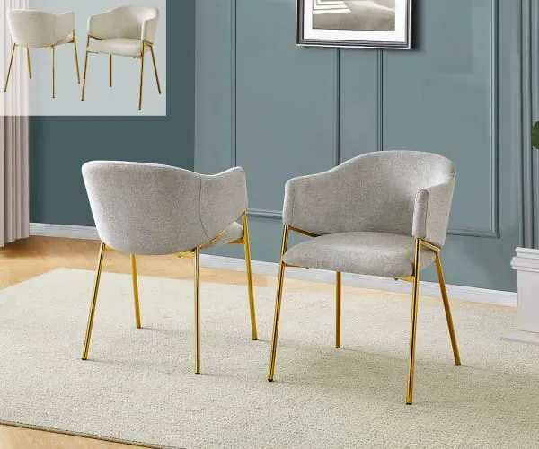 A set of 2 side chairs upholstered with sleek linen fabric, available in colors Gray and Beige. With adjustable gold chrome legs, these versatile and functional chairs are perfect for any setting.