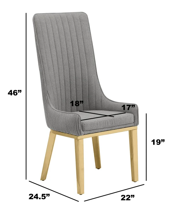 The base of each chair is crafted from gold stainless steel, providing a strong and durable foundation while also adding a touch of luxury. This combination of materials ensures that the chairs are not only stylish but also built to last.
