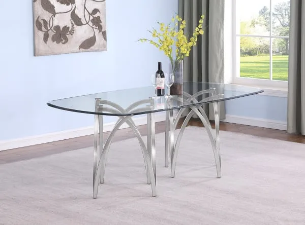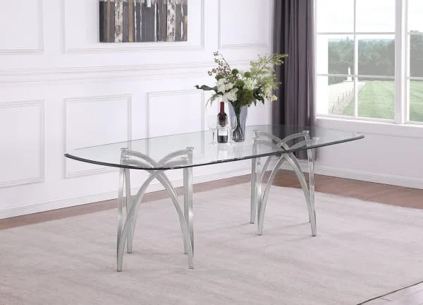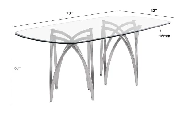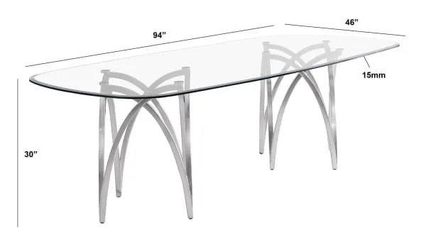 Make a statement in your dining area with this modern glass dining table. Featuring a sleek, rectangular tabletop crafted from clear 15mm tempered glass and matte chrome base, it offers both durability and a sophisticated aesthetic. This table is available in 2 sizes, with a seating capacity of 6 for the smaller size, and 8 for the larger.
