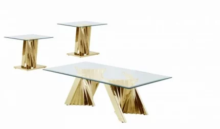 BQ-CT04-05-05 Glass Coffee Table Sets: Coffee Table and 2 End Tables with Stainless Steel Gold Base