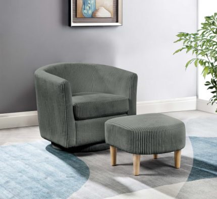The new swivel chair offers a stylish and comfortable addition to any space. Its matching ottoman provides a cohesive look and extra comfort, making it a versatile piece for relaxation or work. The solid wood construction ensures durability and longevity, while the natural coloring adds a touch of elegance and warmth. The velvet stripe design upholstery enhances the chair’s aesthetic appeal, adding a luxurious texture and visual interest. This combination of quality materials and thoughtful design makes it an excellent choice for anyone looking to upgrade their home office or lounge area with a blend of functionality and style. This chair requires light assembly; all hardware is included in the packaging. Available in: Gray, Black, and White Features: