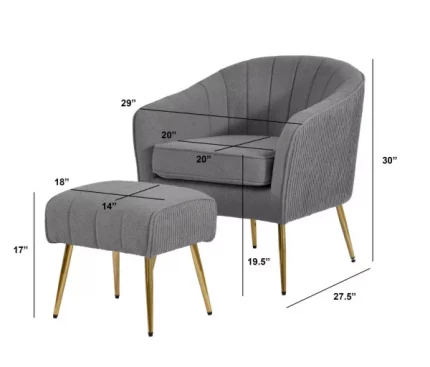 Dimensions:  Chair: 27″L x 24″W x 25.5″H Ottoman: 18″L x 17″W x 14″H