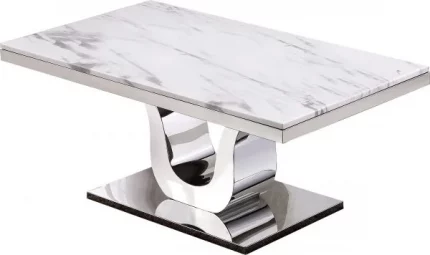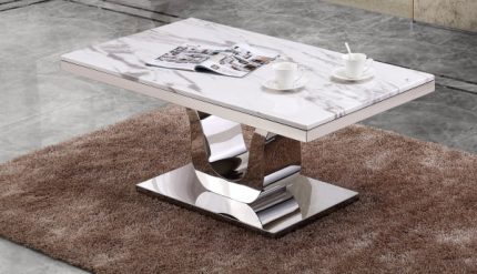 Genuine white marble top with Stainless Steel Base coffee table, perfect for adding a classy look to your living room. Assemble dimensions: 48″L x 26″W x 20″H Features: