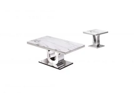 This is a classic 2pc set is perfect for giving your living room a nice classy look with the white marble top and polished stainless steel finish on this sleek coffee table and end table. This Set Includes:
