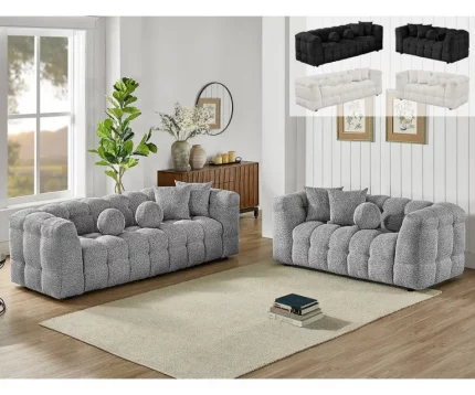 BQ-S10 Boucle Fabric Tufted Sofa & Loveseat with Pillows